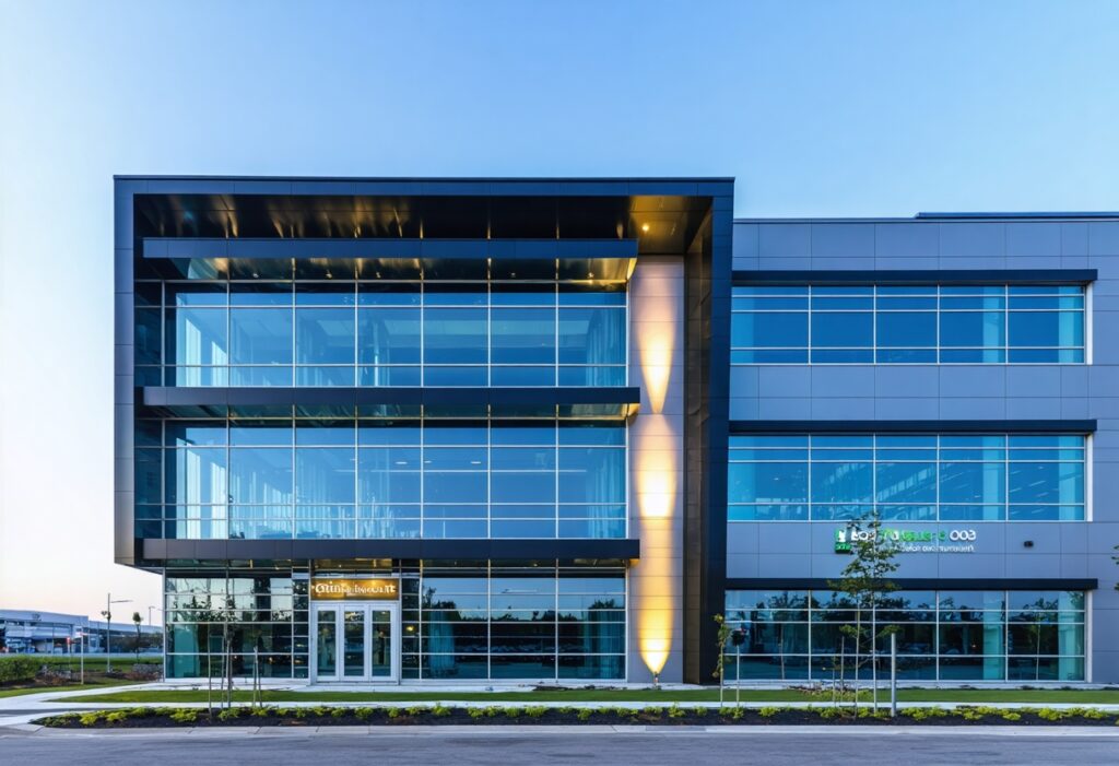 Viele Unternehmen setzen erfolgreich auf die Verbindung von Architektur und Corporate Design, um ihre Marke zu stärken. Ein Beispiel ist ein Technologieunternehmen, das seine Gebäudehülle in den Unternehmensfarben gestaltete und LED-Beleuchtung einsetzte, die das Logo nachts hervorhebt.